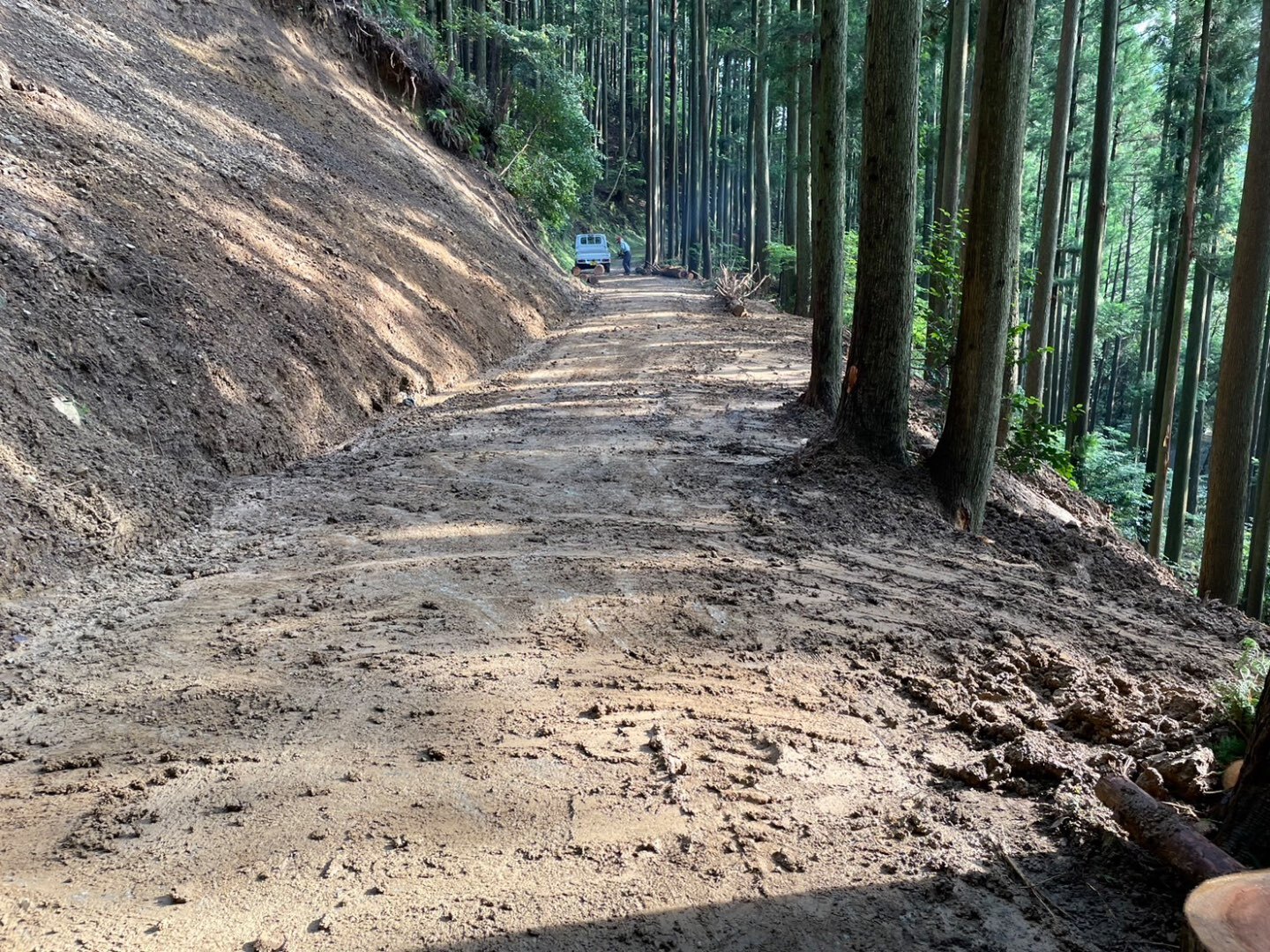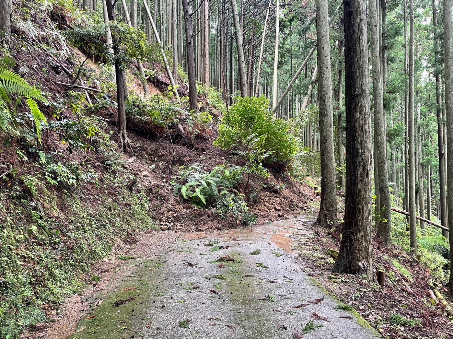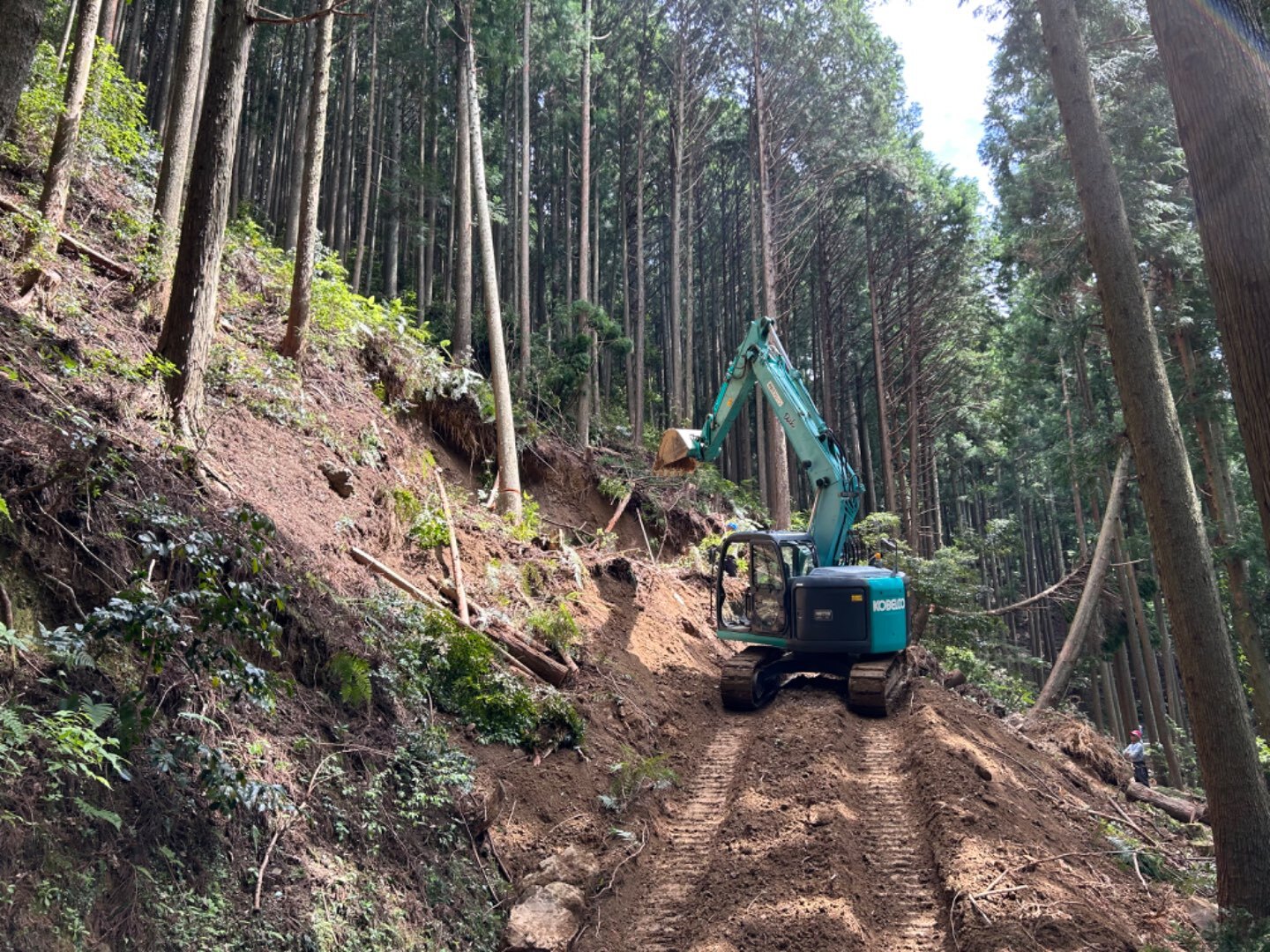 今回の現場は台風2号の大雨により土砂崩れをしてしまった道の復旧作業の様子です。