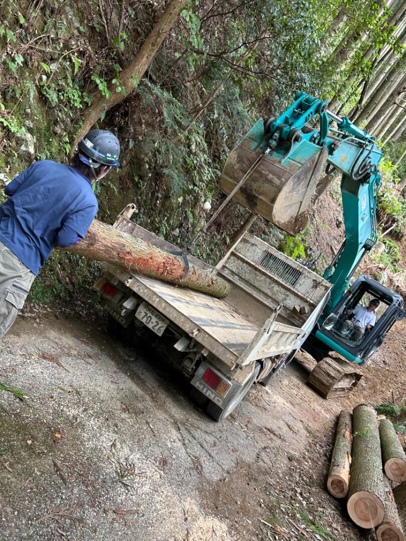 倒木は均等にカットし積み込みます。